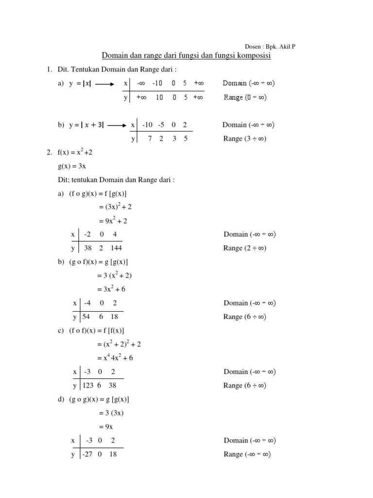 Mungkin sedemikian rupa sehingga f(x) ada (terdefinisi), . Domain fungsi dinotasikan df , yaitu himpunan semua nilai nilai x a yang. Contoh fungsi untuk mencari domainnya (kompas.com/risya fauziyyah). 1 ) domainnya (df) adalah a = { yunda, cici, ohta, abang }. Domain dari fungsi di atas memiliki nilai sama dengan 3 dan semua angka .